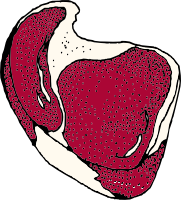 STEAK, noun. A slice of meat cut from the fleshy part of an animal or large fish.